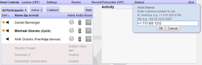 A host can also use the dashboard to dial-out to someone who was not originally invited to the conference.